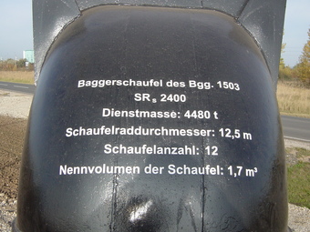 Tagebau Profen: Schaufel eines Radschaufelbaggers mit technischen Angaben