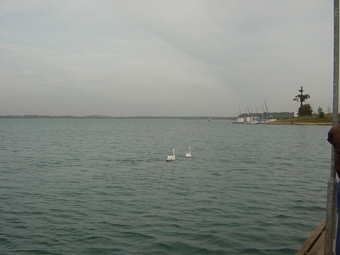 Abgebildet ist eine Ansicht aus dem Landschaftspark Cospuden als weiteres Beispiel zur Umgestaltung der weitläufigen Braunkohlereviere.