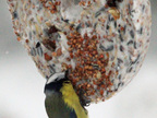 Das Foto gehört zur Serie "Vögel im Winter". Es zeigt eine Blaumeise an der Futterspirale. Es gelten die Nutzungsbedingungen der Mediothek und Pixiothek.