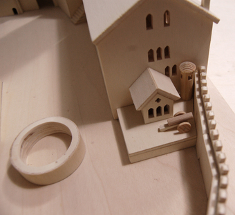 Das Foto gehört zur Serie "Modell der Wartburg". Es zeigt eine Detailaufnahme. Es gelten die Nutzungsbedingungen der Mediothek und Pixiothek.