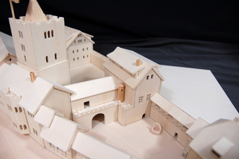 Das Foto gehört zur Serie "Modell der Wartburg". Es zeigt eine Detailaufnahme. Es gelten die Nutzungsbedingungen der Mediothek und Pixiothek.
