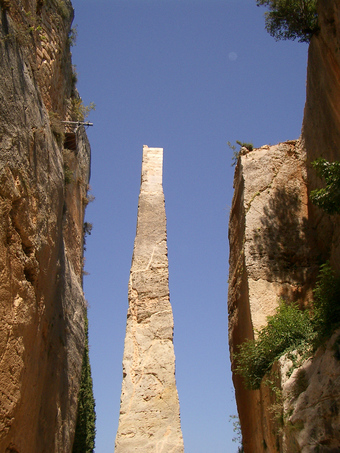 Das Foto gehört zur Serie "Syrien 2004". Es zeigt den Burggraben mit Felsnadel als Brückenauflage der Saladinsburg (Qalʿat Salah ed-Din). Es gelten die Nutzungsbedingungen der Mediothek und Pixiothek.