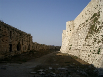 Das Foto gehört zur Serie "Syrien 2004". Es zeigt Festunsmauern vom Krak des Chevaliers, einer Burg in Syrien. Die heute sichtbaren Bauteile stammen überwiegend aus der Zeit der Kreuzzüge. Es gelten die Nutzungsbedingungen der Mediothek und Pixiothek.