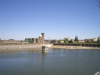 Das Foto gehört zur Serie "Syrien 2004". Es zeigt eine Zisterne in Bosra (Birkat al-Haddsch). Sie hat eine Wasserfläche von ca. 2 Hektar.