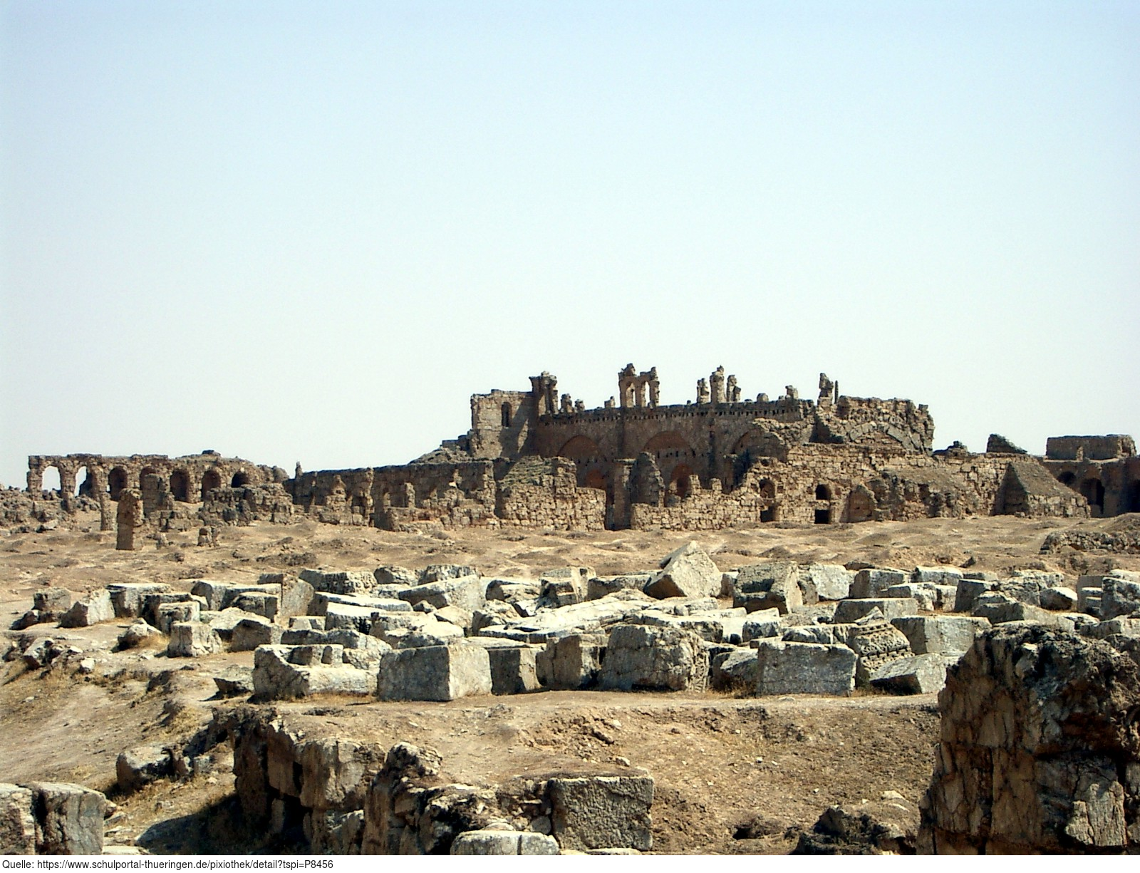 Das Foto gehört zur Serie "Syrien 2004". Es zeigt Sergiopolis, eine durch ein Erdbeben im 17. Jahrhundert zerstörte und aufgegebene Stadt. Es gelten die Nutzungsbedingungen der Mediothek und Pixiothek.