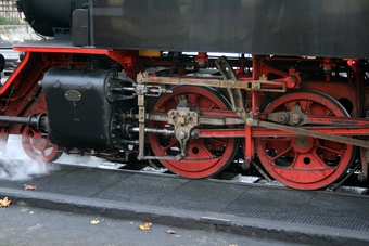 Das Foto gehört zur Serie "Mecklenburgische Bäderbahn Molli". Es zeigt den Antrieb mit Gestänge. Es gelten die Nutzungsbedingungen der Mediothek und Pixiothek.