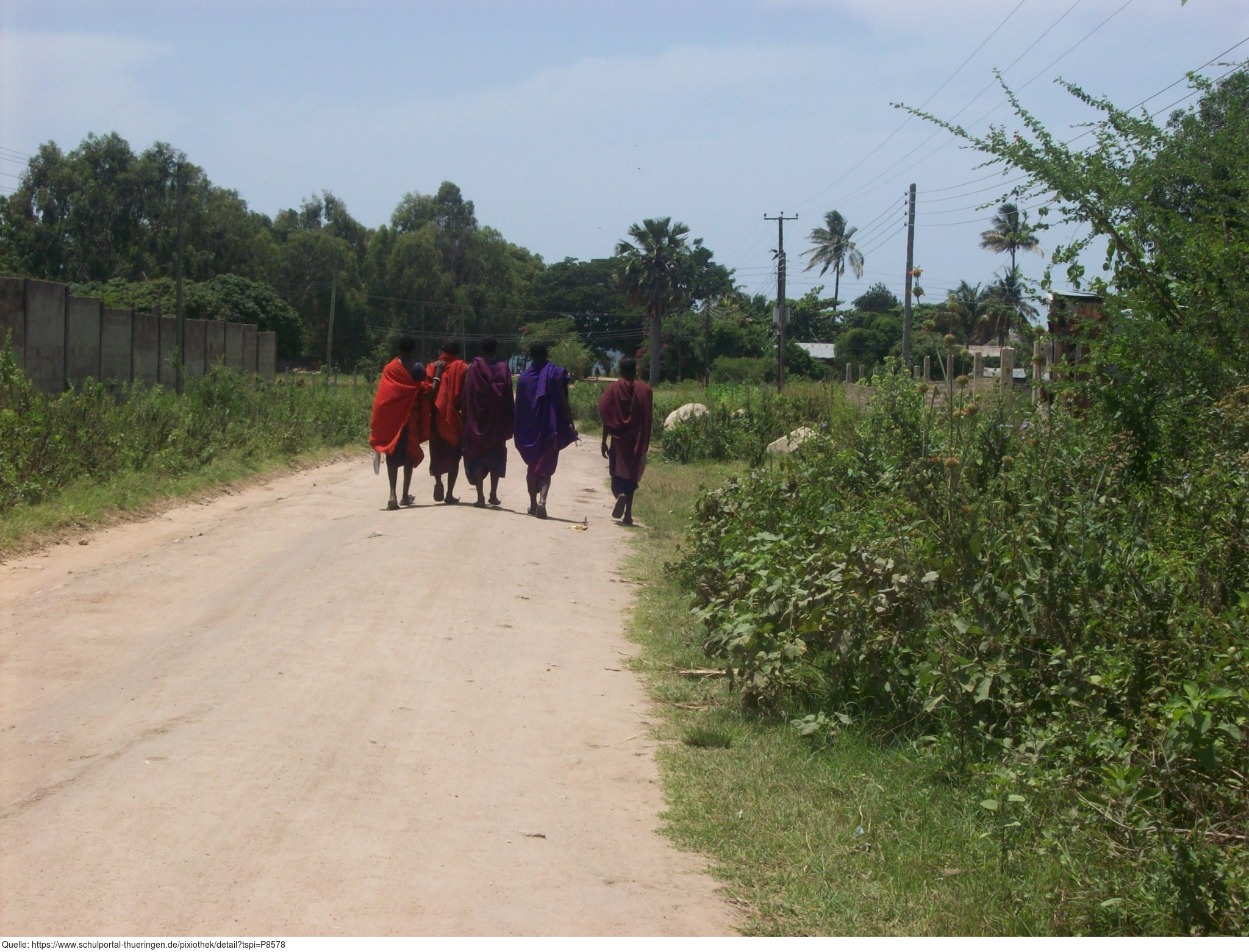 Das Bild zeigt Einwohner einer Ortschaft in Tansania auf dem Weg zum Ufer des Victoriasees. Es gelten die Nutzungsbedingungen der Mediothek und Pixiothek.