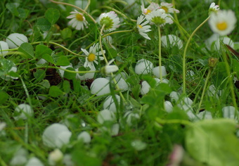 Das Foto gehört zur Serie "Wetter - Niederschlag". Es zeigt Hagelkörner auf einer Wiese. Das Bild ist unter CC0 lizenziert und kann somit frei verwendet werden.