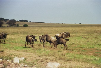 Das Bild wurde in Tansania aufgenommen. Es zeigt Gnus in einer Steppenlandschaft. Es gelten die Nutzungsbedingungen der Mediothek und Pixiothek.
