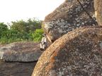 Das Bild wurde in Tansania aufgenommen. Es zeigt ein Nashorn beim Überqueren der Straße. Es gelten die Nutzungsbedingungen der Mediothek und Pixiothek.