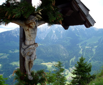 Das Bild gehört zur Serie "Alpen". Es zeigt ein religiöses Kleindenkmal am Wegrand (Flurkreuz, Heiligenstock, Bildstock, in Österreich und Bayern auch als Marterl bezeichnet). Das Bild ist unter CC0 lizenziert und kann somit frei verwendet werden.
