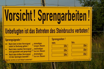 Warnschild: Sprengarbeiten