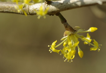 Das Foto gehört zur Serie "Laubbäume". Es zeigt Blüten einer Kornelkirsche (Cornus mas), auch Herlitze, Dürlitze, Hirlnuss genannt. Das Bild ist unter CC0 lizenziert und kann somit frei verwendet werden.