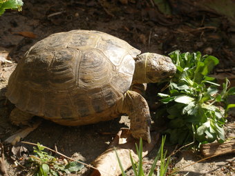 Das Foto zeigt eine Echte Landschildkröten (Testudinidae). Das Bild ist unter CC0 lizenziert und kann somit frei verwendet werden.