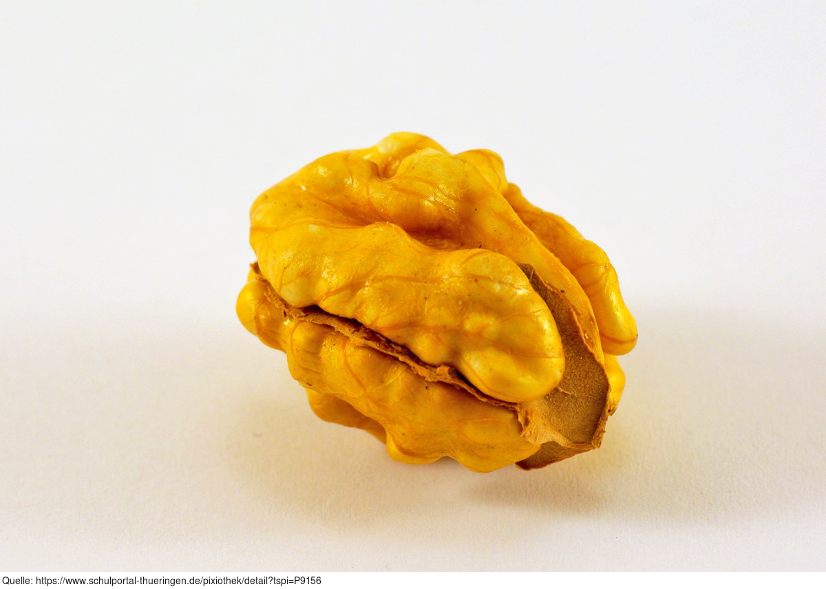 Das Foto gehört zur Serie "Nahrungsmittel". Es zeigt eine Nussfrucht (Tryma) von Walnüssen (Juglans). Das Bild ist unter CC0 lizenziert und kann somit frei verwendet werden.