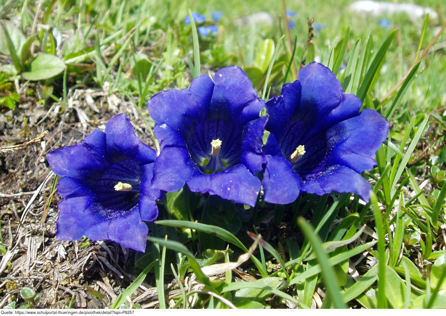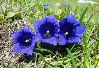 Das Bild gehört zur Serie "Alpen". Es zeigt Enzianblüten auf felsigem Untergrund. Das Bild ist unter CC0 lizenziert und kann somit frei verwendet werden.