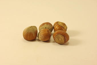 Das Foto gehört zur Serie "Nahrungsmittel". Es zeigt Nussfrüchte des Laubbaums Gemeine Hasel (Corylus avellana). Das Bild ist unter CC0 lizenziert und kann somit frei verwendet werden.