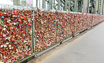 Das Foto gehört zur Serie "Sperrsysteme". Es zeigt Liebesschlösser. Ein Liebesschloss ist ein Vorhängeschloss, das nach einem Brauch von Verliebten z. B. an Brücken angebracht wird, um symbolisch ihre ewige Liebe zu besiegeln. Das Bild ist unter CC0 lizenziert und kann somit frei verwendet werden.