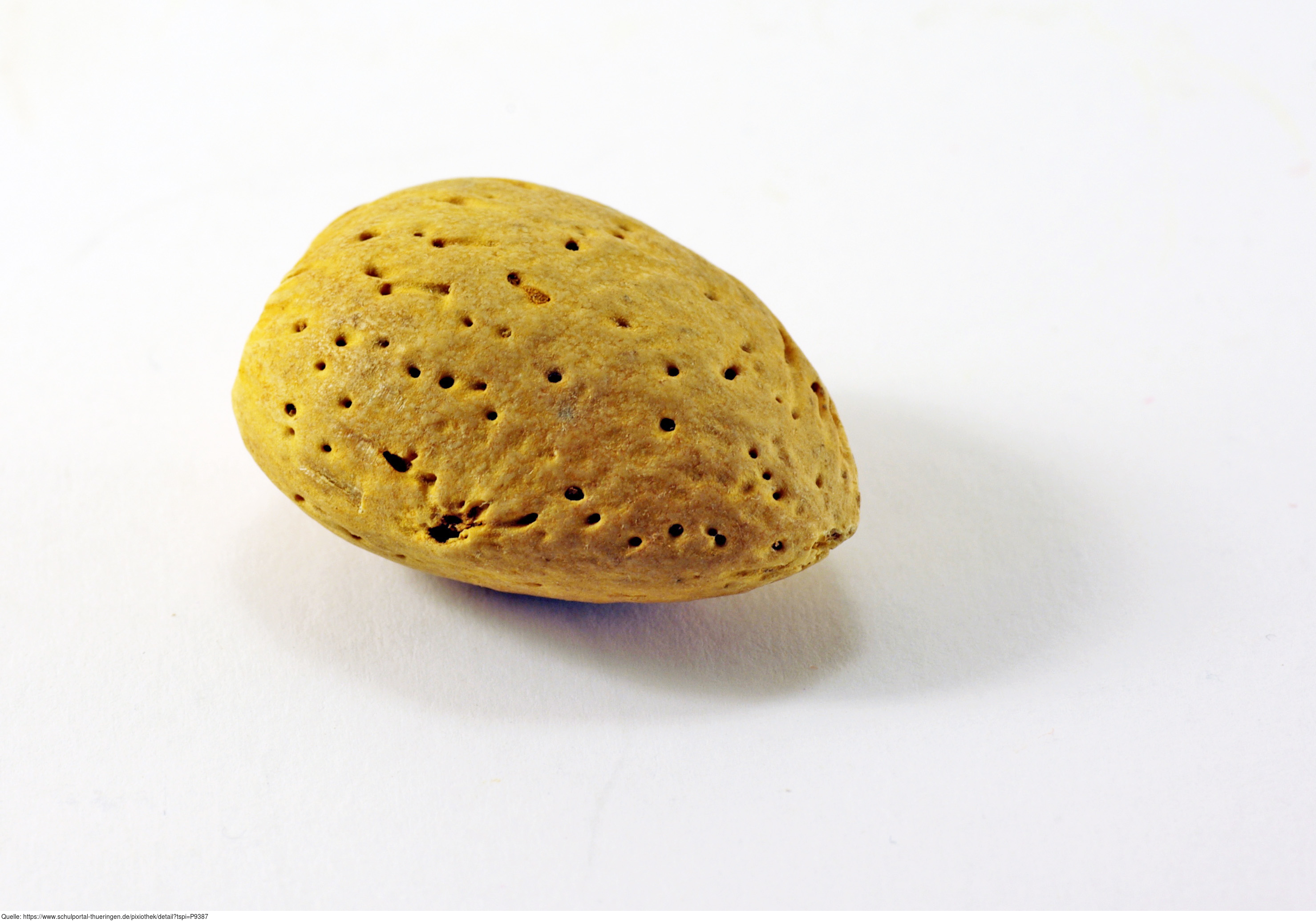 Das Foto gehört zur Serie "Nahrungsmittel". Es zeigt eine Mandel, den Kern der Frucht vom Mandelbaum (Prunus dulcis). Seine Samen, die Mandeln, werden als Nahrungsmittel und Kosmetikum genutzt. Das Bild ist unter CC0 lizenziert und kann somit frei verwendet werden.