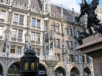 Das Foto gehört zur Serie "München". Es zeigt Details vom Neuen Rathaus am Marienplatz. Der Marienplatz ist der zentrale Platz der Münchner Innenstadt und Beginn der Fußgängerzone. Das Bild ist unter CC0 lizenziert und kann somit frei verwendet werden.