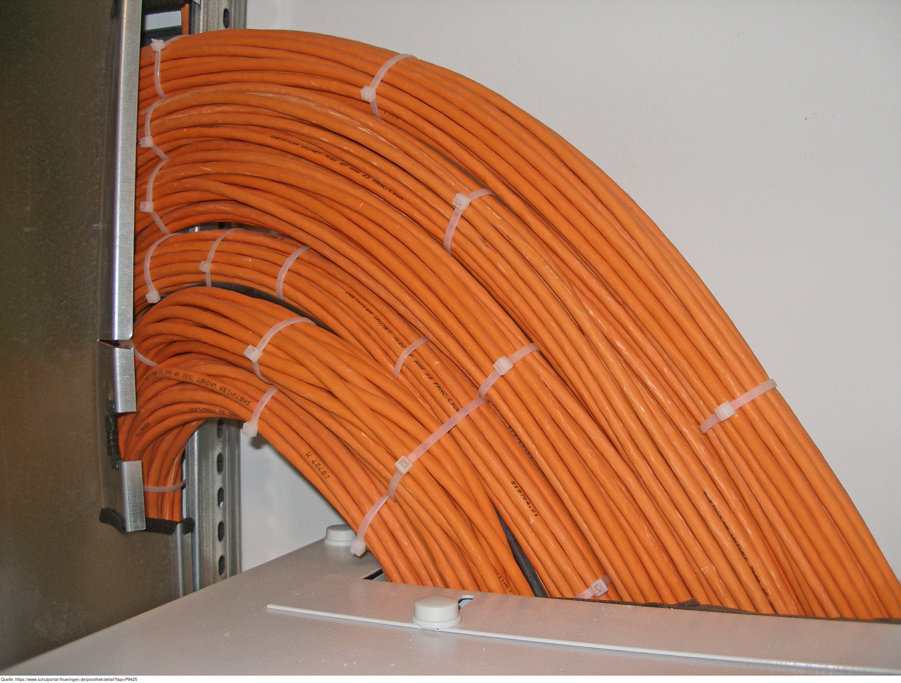 Das Bild gehört zur Serie "Computertechnik". Es zeigt Netzwerkkabel zu einem Serverschrank. Das Bild ist unter CC0 lizenziert und kann somit frei verwendet werden.