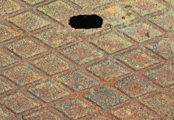 Das Bild gehört zur Serie "Strukturen und Oberflächen". Es zeigt die Abdeckung eines Schachtes aus Gusseisen. Das Bild ist unter CC0 lizenziert und kann somit frei verwendet werden.