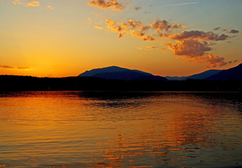 Das Bild gehört zur Serie "Wetter, Wolken". Es zeigt einen Sonnenuntergang am See. Das Bild ist unter CC0 lizenziert und kann somit frei verwendet werden.