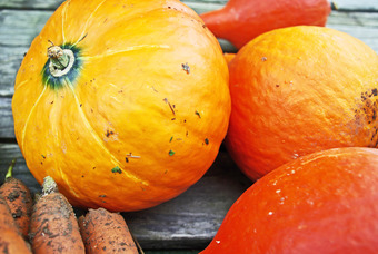 Das Bild gehört zur Serie "Gemüse". Es zeigt Kürbisse und Karotten (Möhren). Das Bild ist unter CC0 lizenziert und kann somit frei verwendet werden.