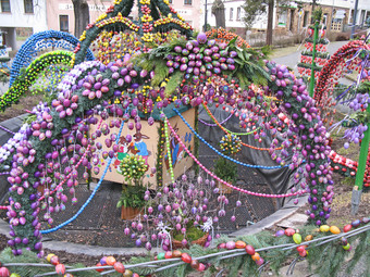 Das Foto gehört zur Serie "Ostern". Es zeigt die Osterkrone in Berga/Elster. 2015 bestand diese Dekoration aus über 15000 bemalten Eiern. Das Bild ist unter CC0 lizenziert und kann somit frei verwendet werden.