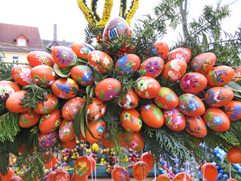Das Foto gehört zur Serie "Ostern". Es zeigt die Osterkrone in Berga/Elster. 2015 bestand diese Dekoration aus über 15000 bemalten Eiern. Das Bild ist unter CC0 lizenziert und kann somit frei verwendet werden.