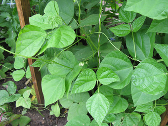 Das Foto gehört zur Serie "Gemüse". Es zeigt Pflanzen der Gartenbohne. Gartenbohnen, die unbegrenzt wachsen und sich dabei stark winden, bekommen vom Gärtner Stangen als Rankhilfen (Stangenbohnen). Das Bild ist unter CC0 lizenziert und kann somit frei verwendet werden.