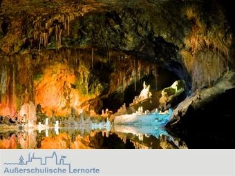 Inhalt Sonderführung in einer Grotte (Morassinahöhle, Saalfelder Feengrotten) mit folgenden Schwerpunkten: - Vorkommen, Abbau, Gewinnung und Nutzung von Eisenoxidpigmenten. - Vorteile von Eisenoxidfarben. - Malkurs: Wie kommt die Farbe auf das Porzellan?
